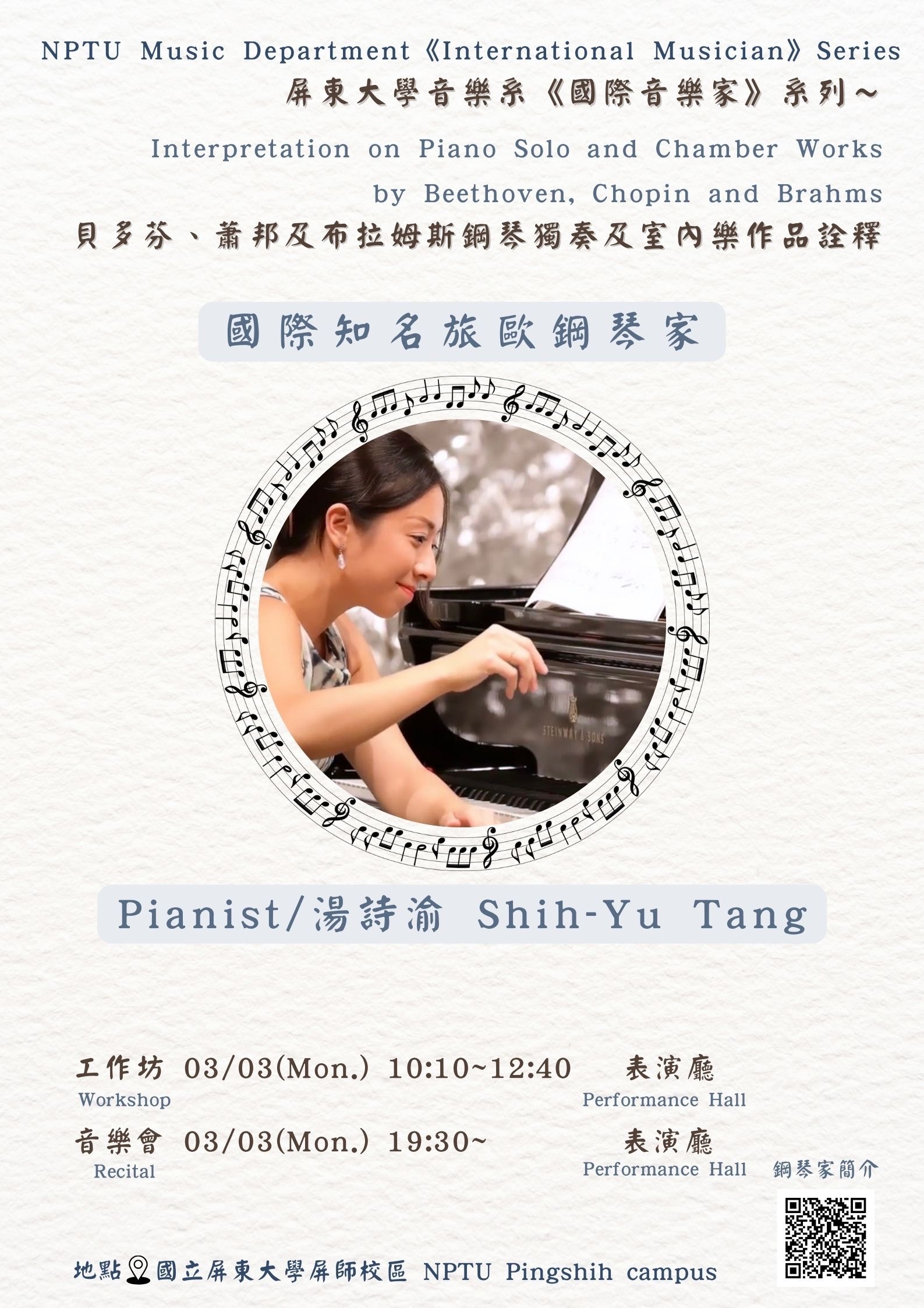 【活動】旅歐鋼琴家湯詩渝系列活動~(114年3月3日 屏師表演廳)